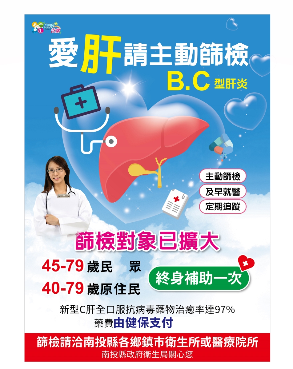 目前國民健康署提供 45 至 79 歲民眾終身一次 B、C 型肝炎篩檢,截至 2023 年 7 月曾接受過篩檢的人數已經超過 533 萬人。國民健康署署長吳昭軍表示:「鼓勵符合條件民眾,為了自己也為了家人,善用政府提供的免費服務,一生至少接受 1 次 B、C 型肝炎篩檢。