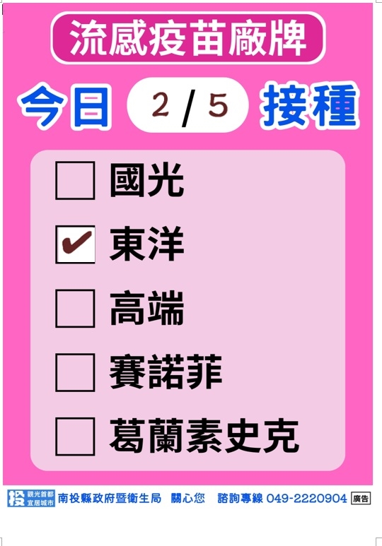 115年2月5日(四)流感疫苗施打廠牌
