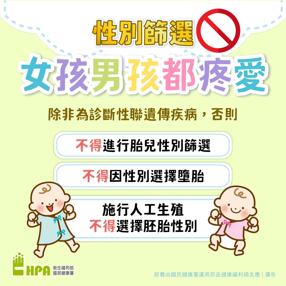 ⚠️若「以性別差異要求施行人工流產」或「人工生殖選擇胚胎性別」,已屬違法⚠️