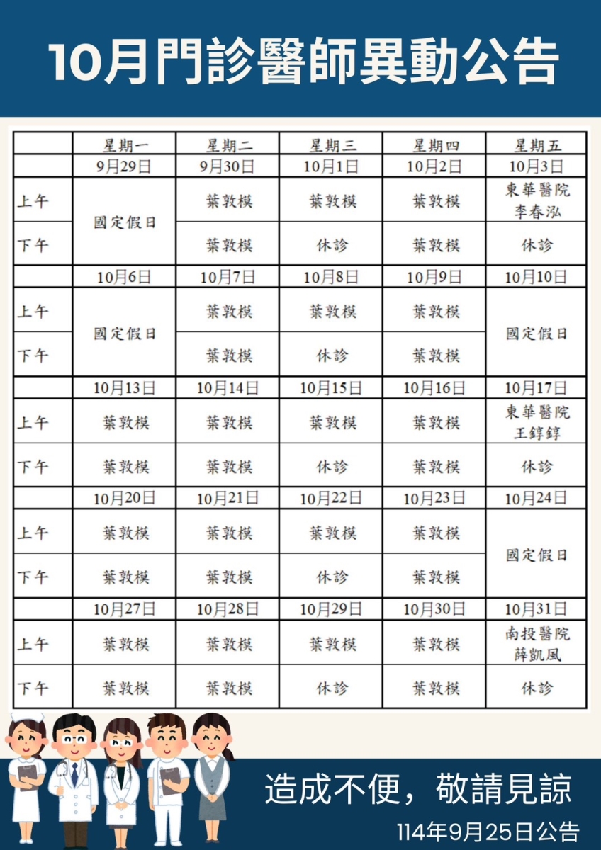 ⚠️[門診公告]⚠️ 10月份門診表調整