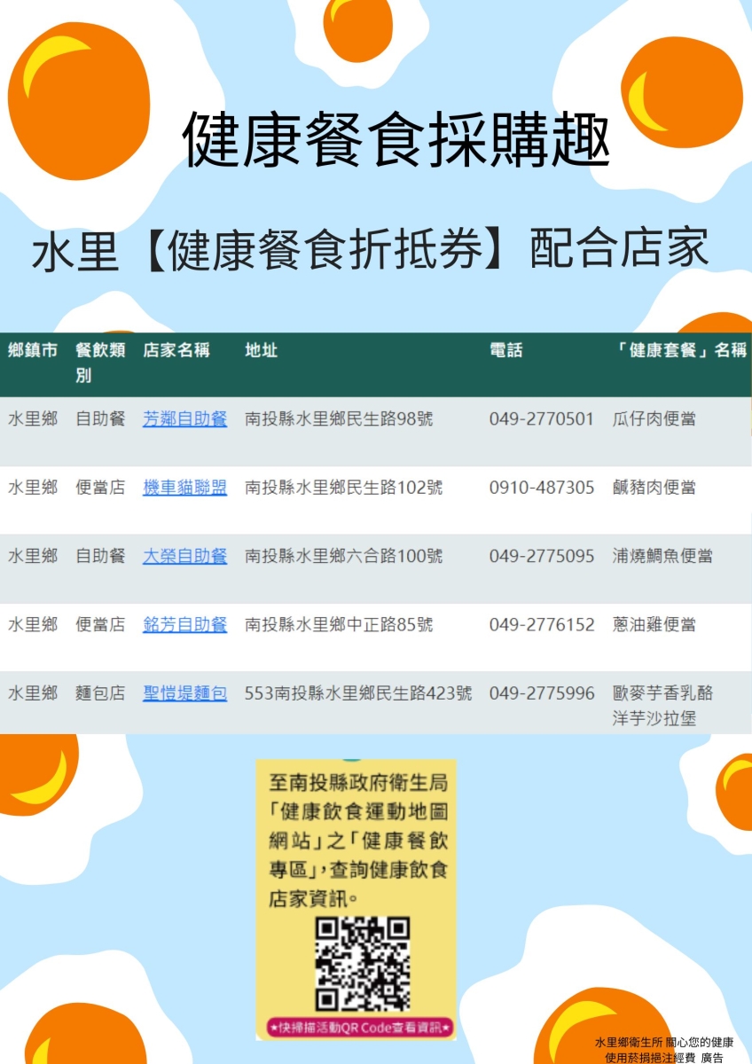 健康餐食店家請上南投縣政府衛生局健康飲食運動網 https://health-hp.ntshb.gov.tw/m_food.aspx