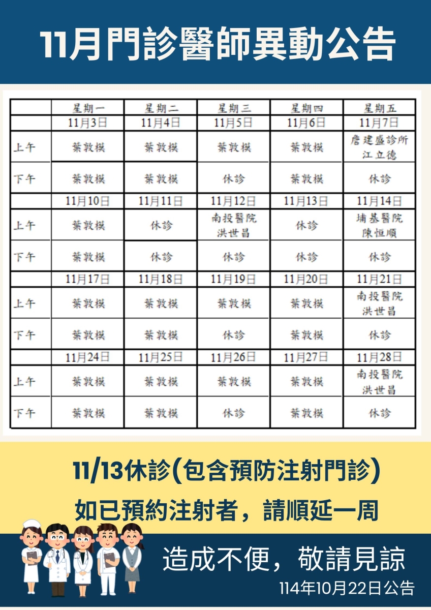 ⚠️[門診公告]⚠️ 114年11月份門診表