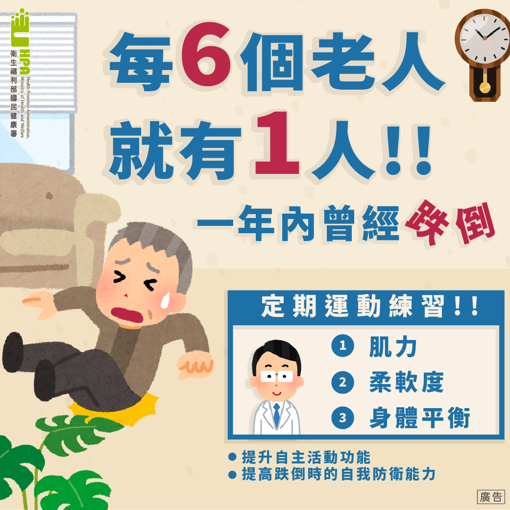 預防跌倒應該要定期運動練習肌力、柔軟度和身體平衡