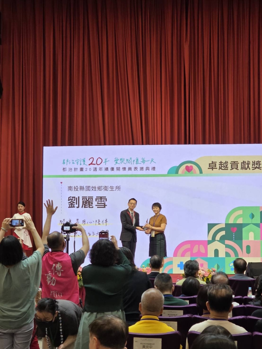 國姓衛生所都治關懷員劉麗雪,榮獲得疾管署-都治計畫20週年績優關懷員表揚