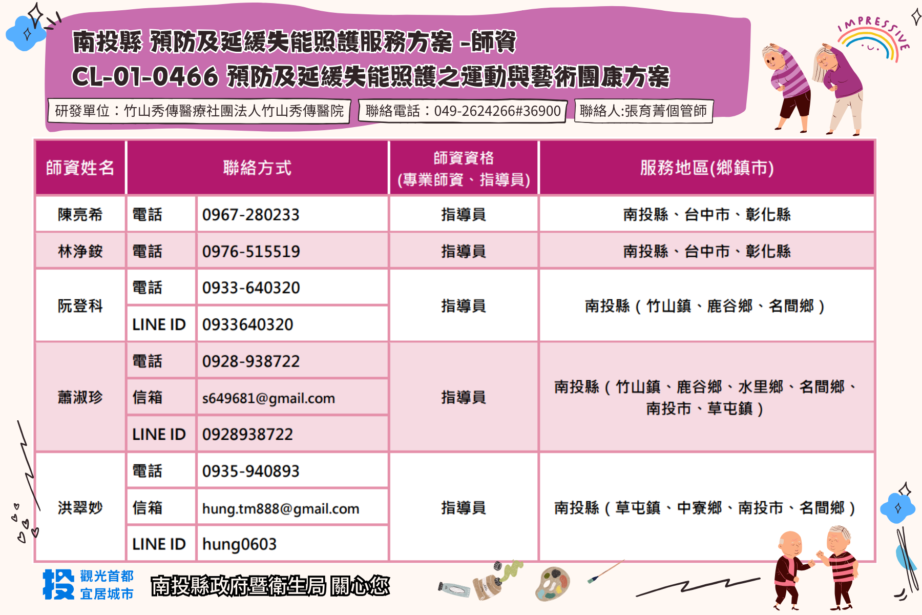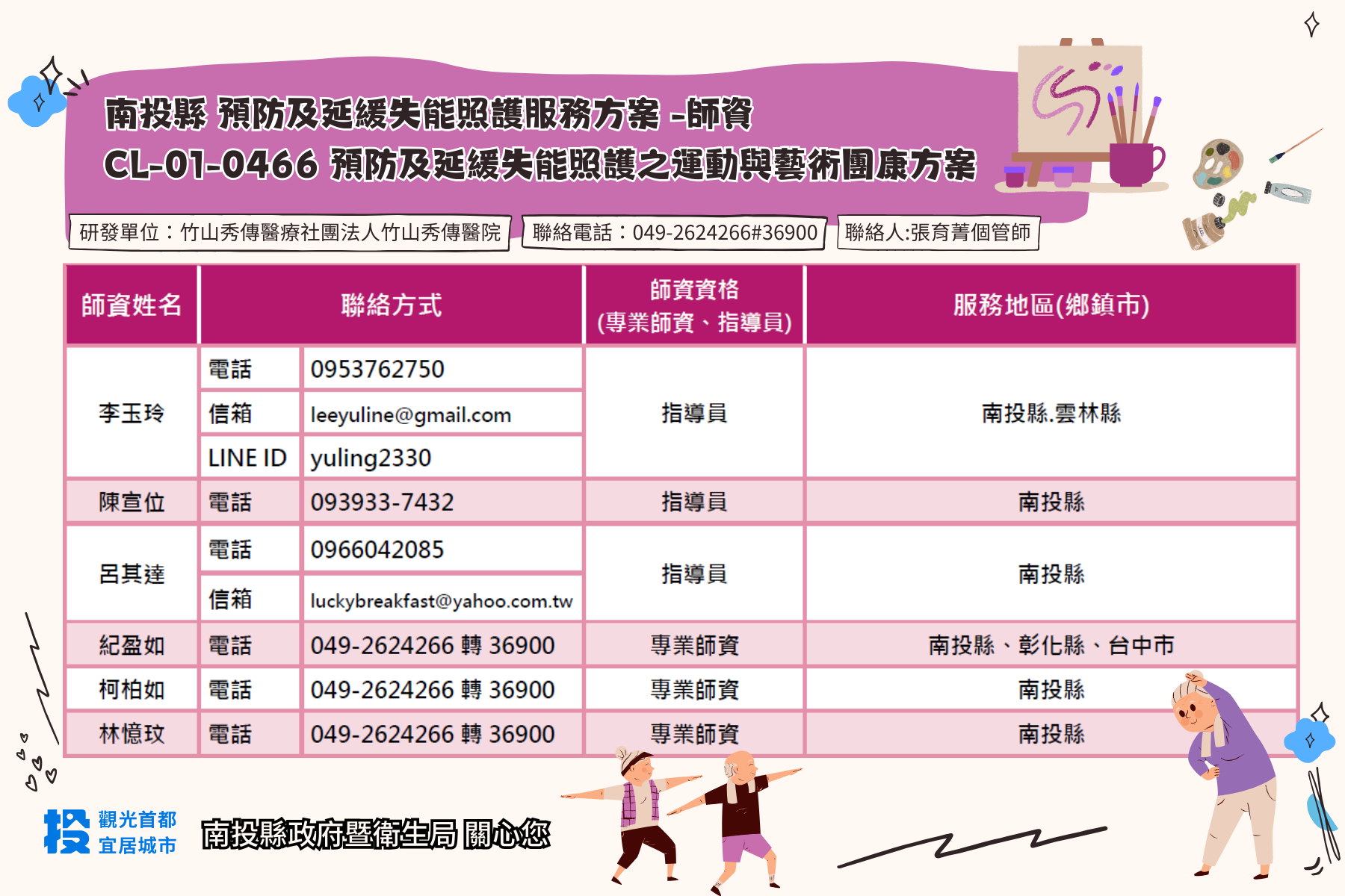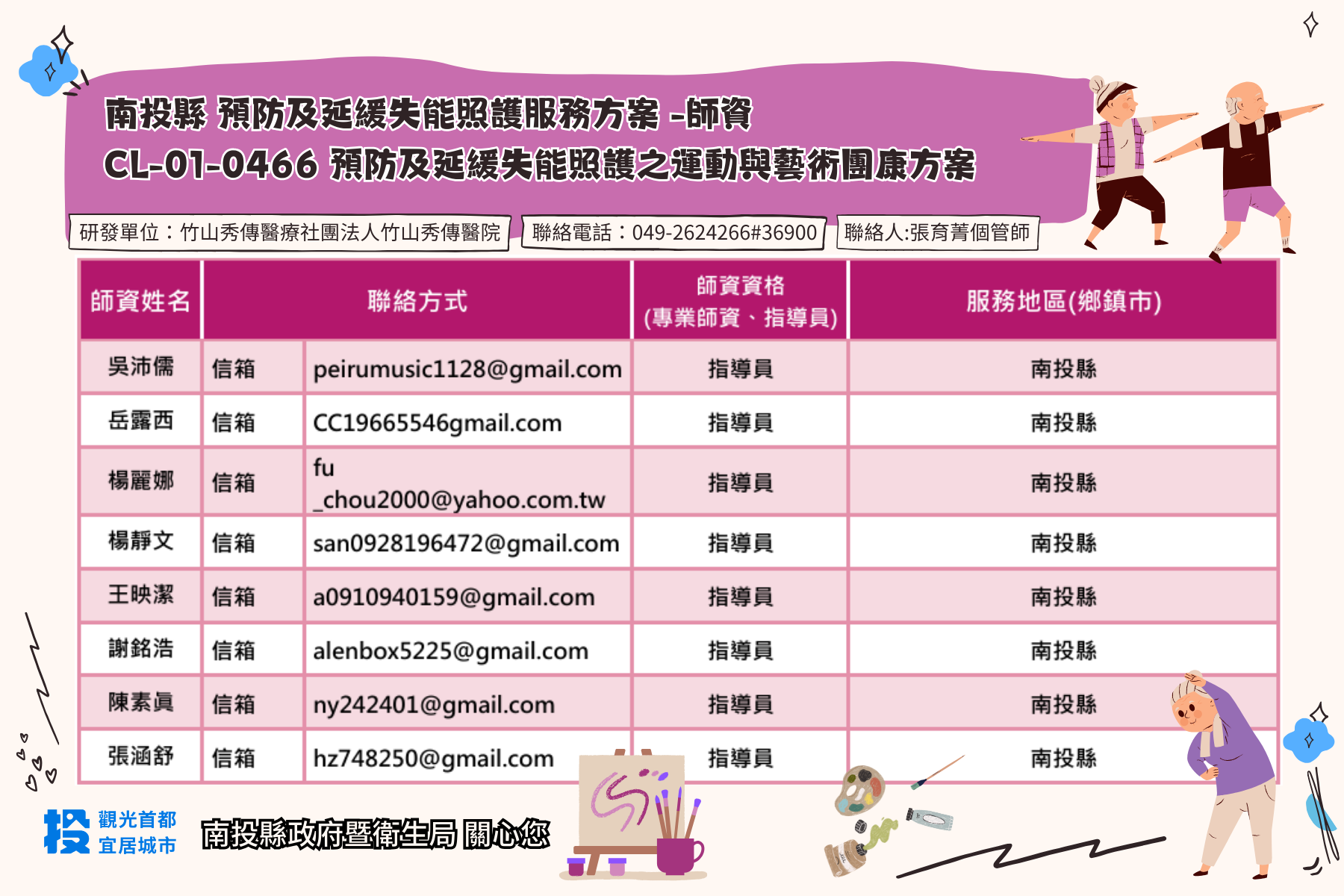 CL-01-0466 預防及延緩失能照護之運動與藝術團康方案 -師資介紹