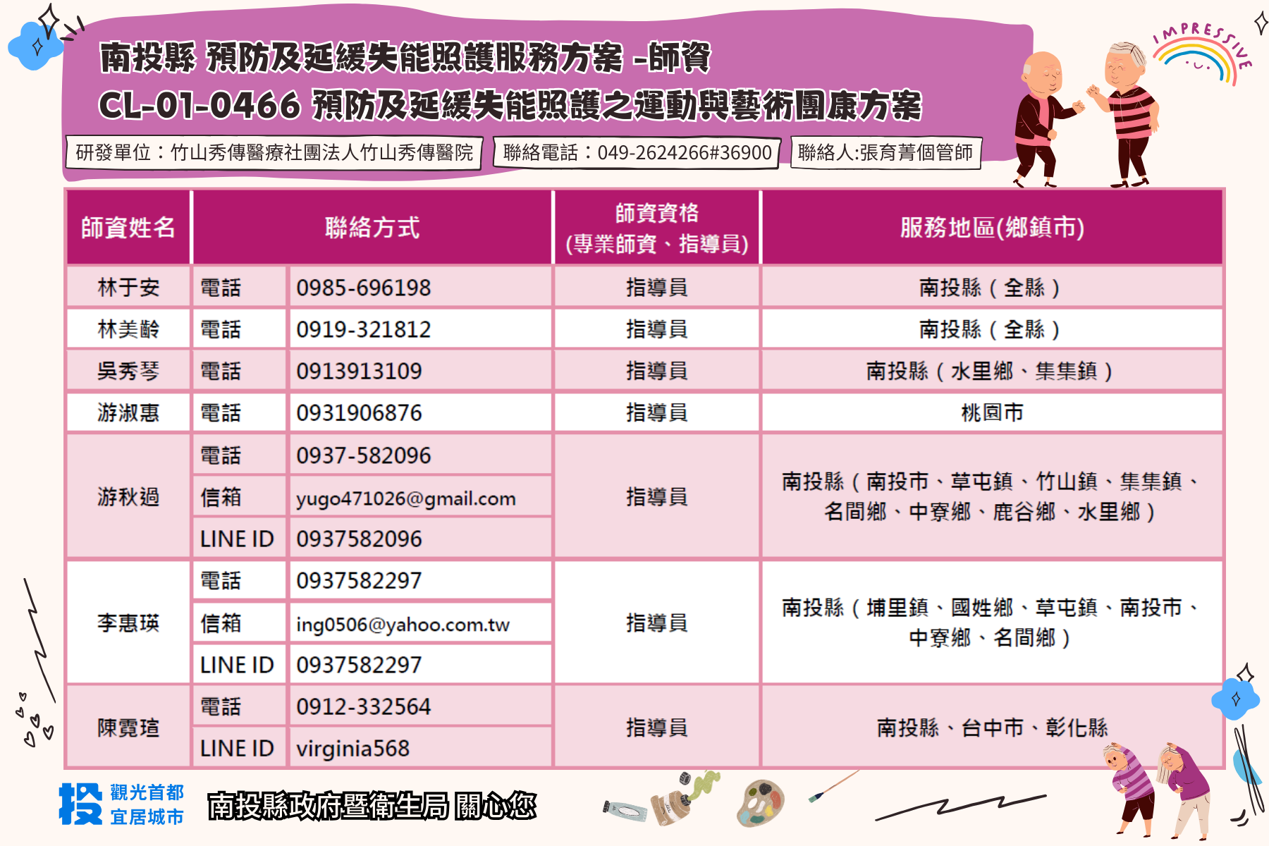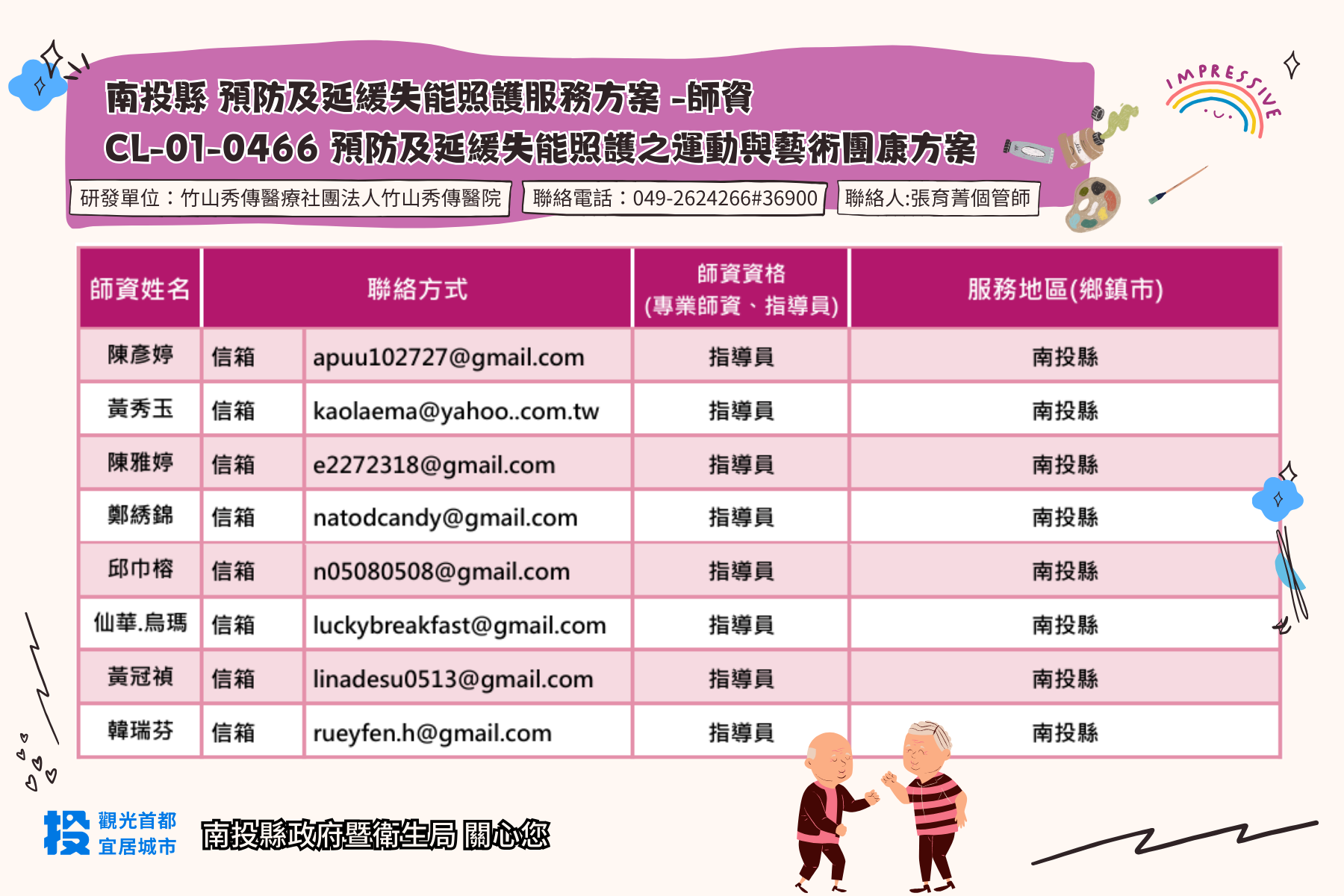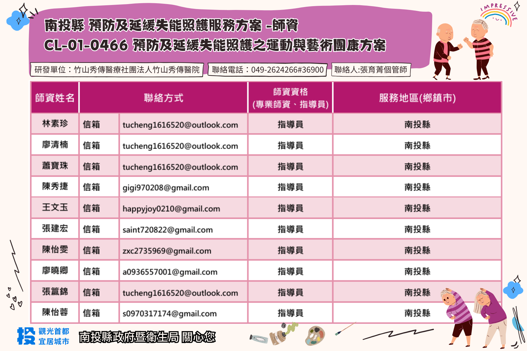 CL-01-0466 預防及延緩失能照護之運動與藝術團康方案 -師資介紹