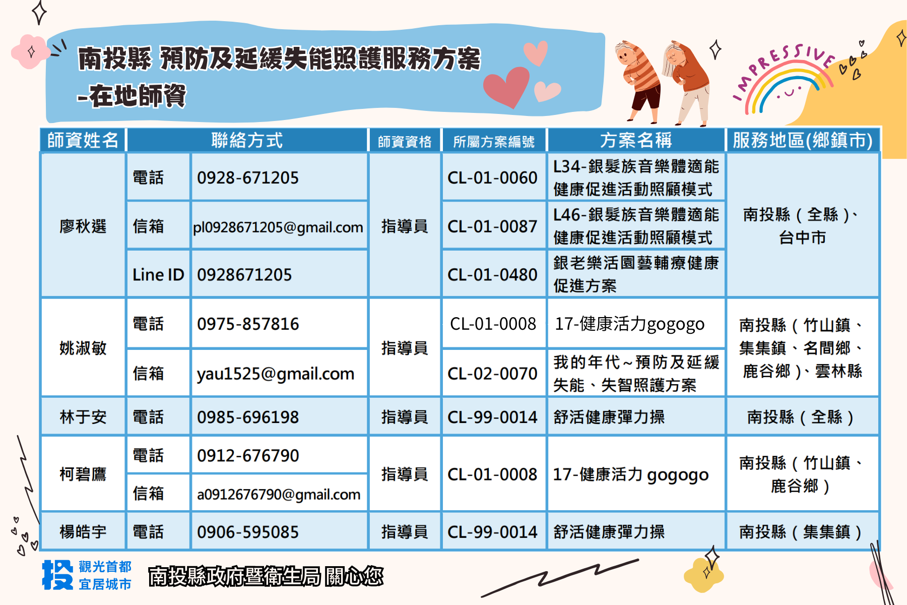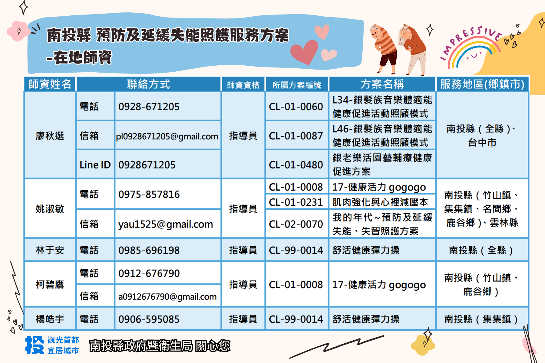 「預防及延緩失能照護服務方案」南投縣-在地服務師資
