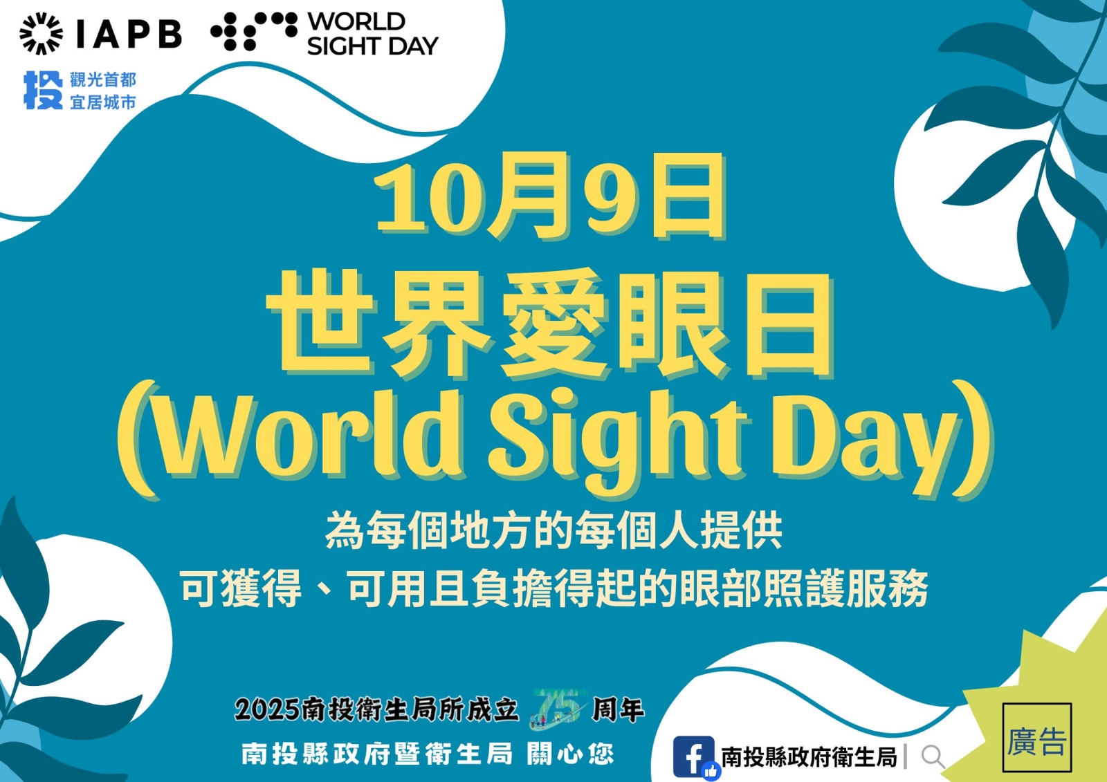 每年10月第二個星期四為世界愛眼日(World Sight Day),2025年主題為LoveYourEyes,為世界各地每個人提供可獲得、可用且負擔得起的眼部護理服務。南投縣為免除鄉親眼科就醫舟車勞頓之苦,於中寮鄉衛生所、國姓鄉衛生所、魚池鄉衛生所、鹿谷鄉衛生所及集集鎮衛生所每週五辦理眼科專科門診服務,至今累計已服務鄉親近1萬3,613人次,讓在地長輩能就近完成眼科診療及追蹤,省去長途奔波之苦。