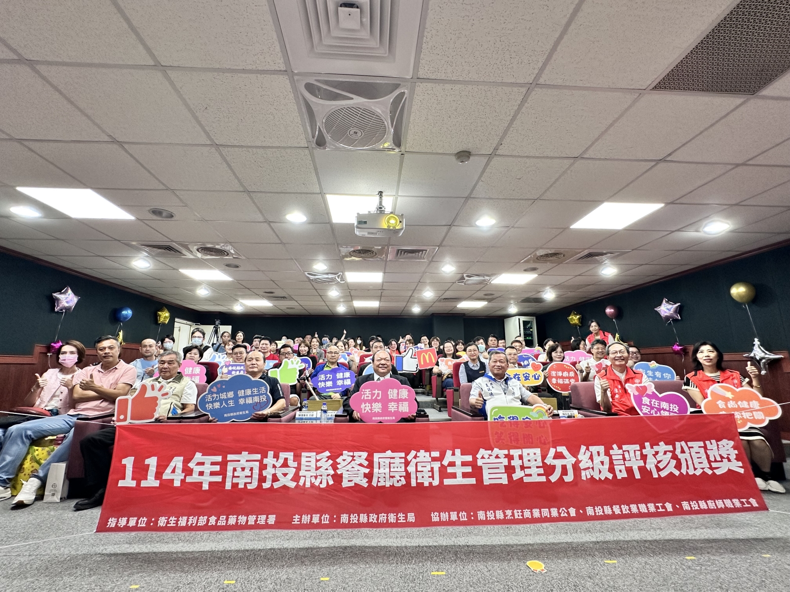 副縣長王瑞德表示南投縣為台灣觀光首都,除了有絕美好山好水、豐富在地美食與風情外,也是遊客觀光的好地方。為兼顧遊客觀光及本縣民眾食的安全,打造的優質餐飲環境,本(114)年度衛生局上半年針對早餐店、飲料店共評核參加評核家數:302家,通過評核家數:優級206家,良級75家,衛生局已先行將優良獎章直接遞送店家。下半年針對一般餐館及20桌以上宴席餐廳等提供桌餐之業者餐飲衛生管理分級評核,邀請專家學者組成評核小組,依據「食品良好衛生規範(GHP)準則」,針對作業場所、從業人員、用餐及販售場所等進行衛生管理查核。其中共有60家提出申請,59家通過評核(優級44家、良級15家)。