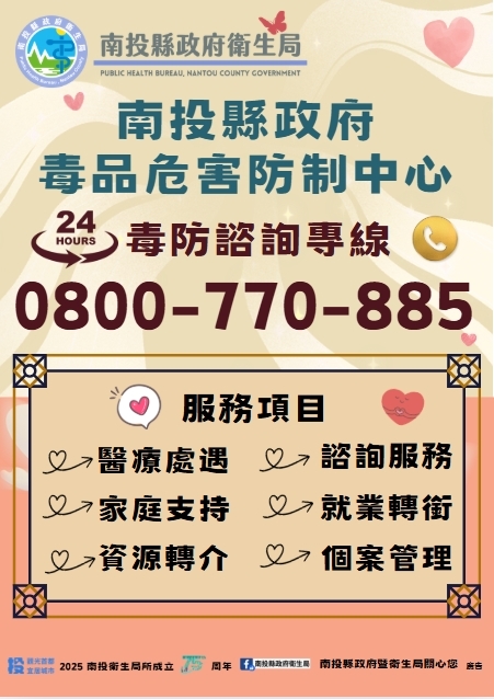 若您或您認識的親友正面臨藥癮或心理困境,請撥打 24 小時免付費毒品防制諮詢專線 0800-770-885(請請你,幫幫我),讓專業團隊與您共同走過這條復元之路 (求助網址:https://ntshb.tw/hc05pE6Ri )。