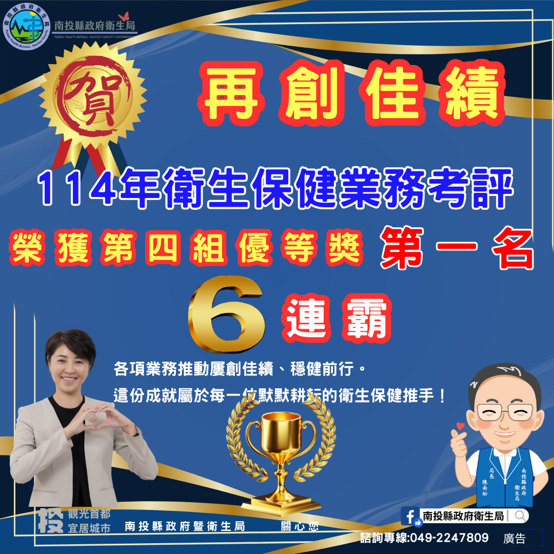 南投縣衛生保健 6連霸 考評第一